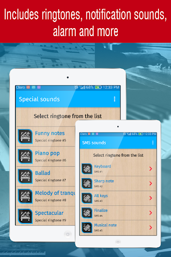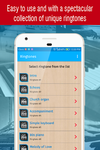 piano ringtones free is the new ringtones app to enjoy great sounds and tones (special sounds and sms tones included), it has a friendly interface, easy to use and fast and the connection to the servers is good optimized.