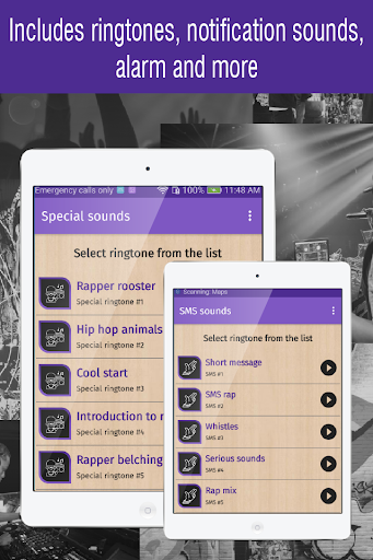 rap sounds is an app designed especially for your cell phone, with a great collection of ringtones that you can use as: ringtones, sms sounds, alarm or notification.