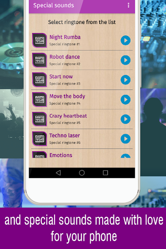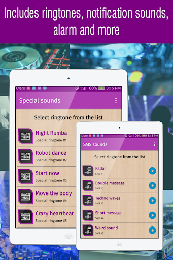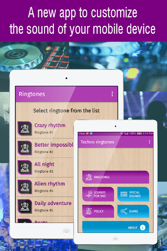 ringtones techno is the new ringtones app (notification sounds techno included) to enjoy great sounds and tones (special sounds and sms tones included), it has a friendly interface, easy to use and fast and the connection to the servers is good optimized.