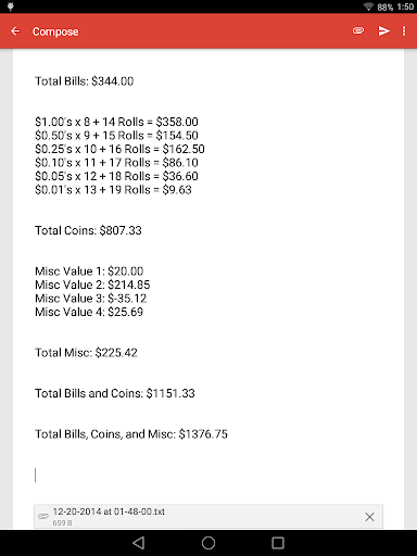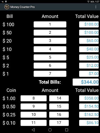 Money Counter Pro is a handy tool for anyone who may need to add coins, bills, checks, receipts, and generally any other type of monetary based calculation. This version also supports subtracting miscellaneous values from your calculations.