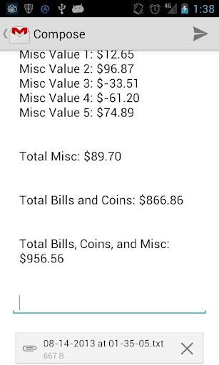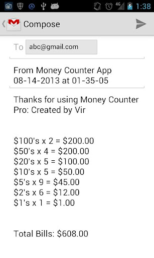 - The optional saving and time stamping of data input in the app in a folder called "Money Counter Pro" in your external storage device.