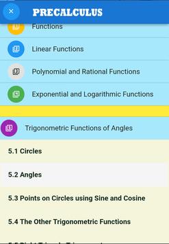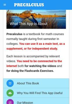 Since many topics on Precalculus are covered with lessons and videos, the students can use this app as a reference tool for getting clarity in concepts and also for last minute revision before exams.