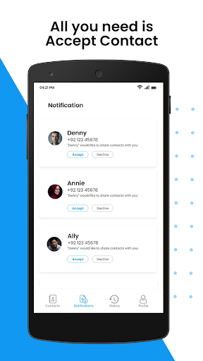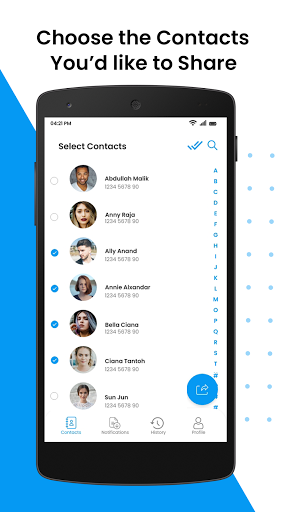 The contact sharing app is completely free and secure, it allows you to share your contacts with your friends and family. Our contact sharing app offers a quick and easy way to share contacts.