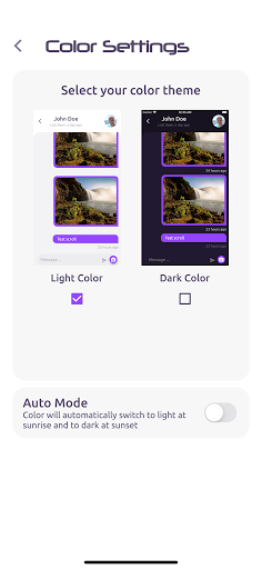 - Switch between dark or light mode.