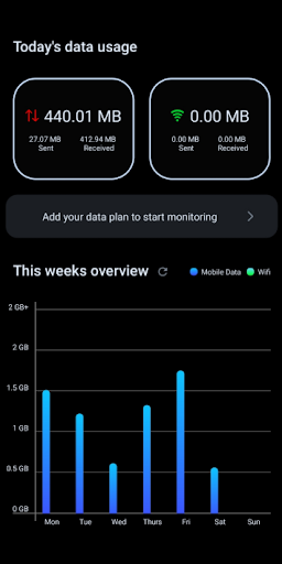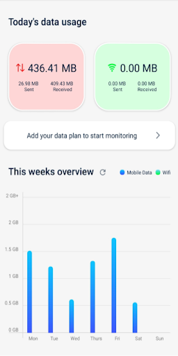 Get insight into the internet data consumption of your mobile phone with this Data monitor. In a handy overview you can see your mobile data usage and your WiFi usage per day and week. It is also possible to see which apps use the most internet data. Place the handy widget on your home screen or set notifications when you threaten to exceed the desired internet data amount.