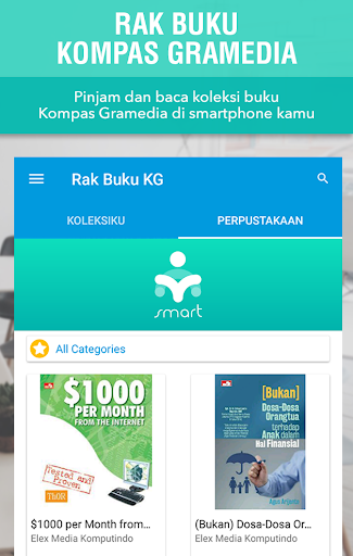 KG Smart è il servizio ufficiale della biblioteca digitale di proprietà di Kompas Granida che fornisce una raccolta di biblioteche digitali (libri, riviste e giornali) per il dipendente interno Kompas Gramedia.