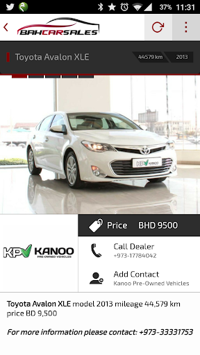 Search and contact authorised automobile dealers in the Kingdom of Bahrain and get the best deals. Everyday updates are sent by these car dealers so that customers interested in purchasing brand new cars or high quality used cars are regularly kept up to date with market prices. Whether you are a car dealer or a potential customer searching for new cars or used cars located in Saudi Arabia, Bahrain, United Arab Emirates, Kuwait or Qatar this application will prove handy saving you a lot of time and effort searching for the best cars money can buy. No matter what your budget is, this application should serve as a launch pad towards taking the right step in making your final decision.