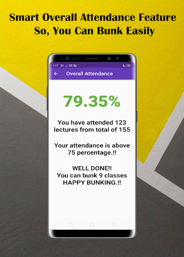 App gives details about overall attendance of all subjects,with the help of this you can bunk easily with maintaining a minimum attendance.