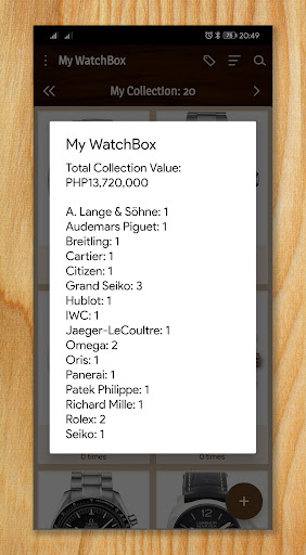 Displays the total value of your watch collection