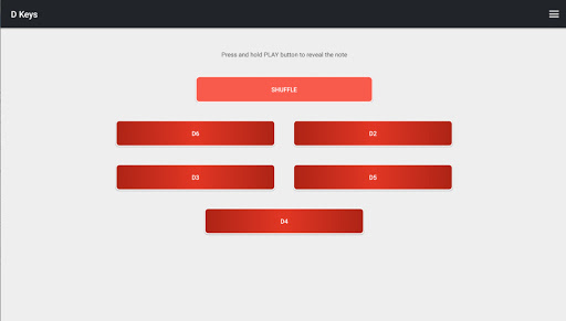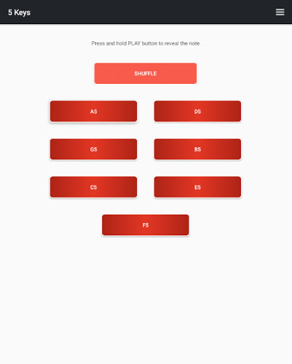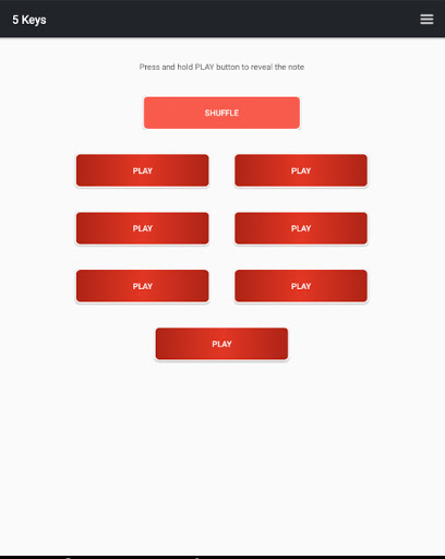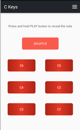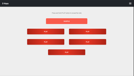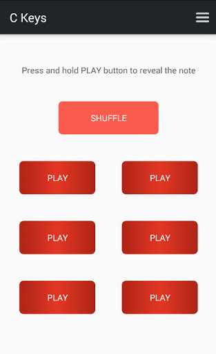 All keys are hidden, click the Play button to play the note. To reveal the note press and hold the Play button.