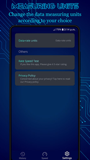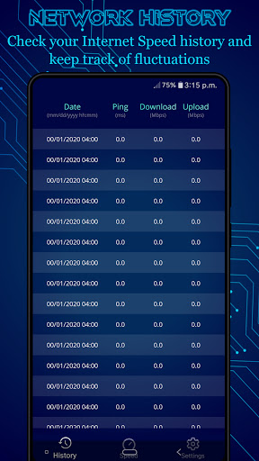 Keep track of your past internet speed test with History feature.