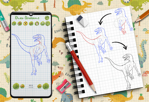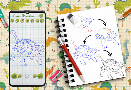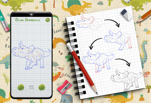 Learning how to draw dinosaurs has never been easier! You can choose to draw directly on your phone screen, allowing you to practice anytime and anywhere. Alternatively, grab a pencil and sketch pad, and follow the app's instructions to create awe-inspiring dinosaur illustrations on paper.