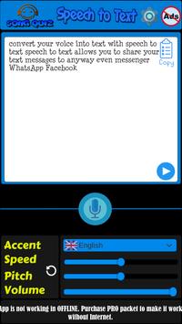 Speech to Text gives you a chance to convert your voice to Text, You can manage some sort of settings, like human accents, pitch, speed... You can easily share it to any social networks, like: Messanger, WhatsApp, Viber ... in Speech to Text you can also convert your text to voice, in this way you can listen funny pronunciation.