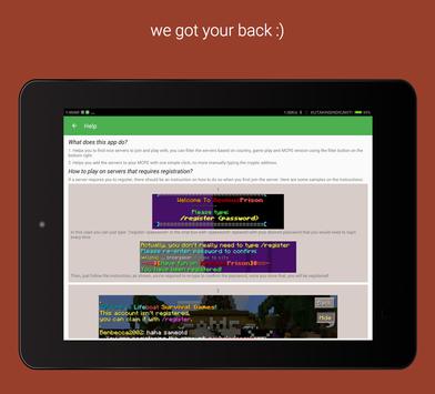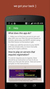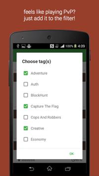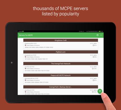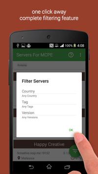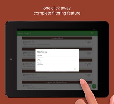 - Filter MCPE servers by country, game play tags and MCPE version.