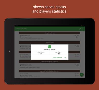 Servers For Minecraft PE is a tool that gathers data of the best Minecraft PE servers from various sources to help you find the best MCPE servers based on your criteria. And also to helps you adding the server to the game in one simple click. The app only shows servers that has up time higher than a certain number and shows the MCPE server list based on the popularity. But you can also filter the servers to help you find the best one(s). For example, let say you want to find Servers for Minecraft PE 1.0.7, located in United States, with PvP game play? sure! You can create this kind of filter easily.