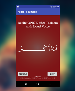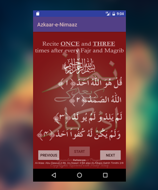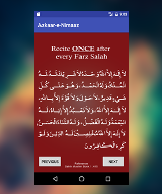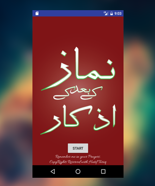 Azkaar-e-Nimaaz application is a small application which contain different prayers which should recite after every farz salah. every page contain one single prayer. Azkaar-e-Nimaaz is a small and beautiful application for all those who love praying. Azkaar-e-Nimaaz can be downloaded in all android phones which are high from 4.0 software.