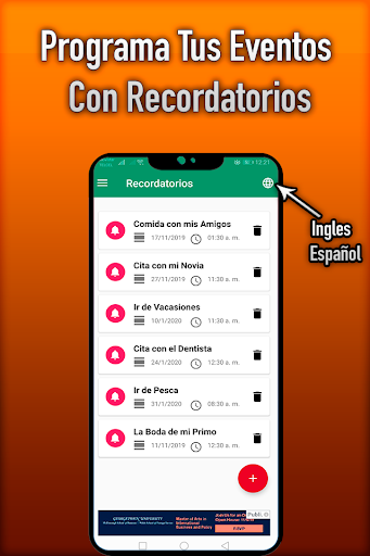 * ထိပ်မှာ application ကိုအင်္ဂလိပ်နှင့်စပိန်ဘာသာသို့ပြန်ဆိုရန်ကမ္ဘာ၏ပုံစံဖြစ်သောအိုင်ကွန်တစ်ခုဖြစ်သည်။