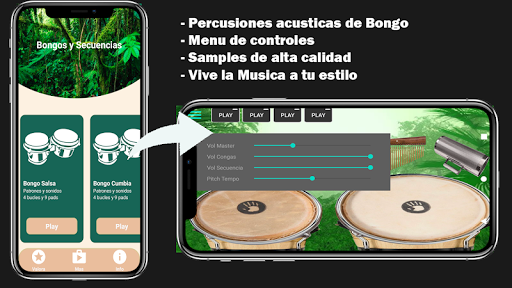 Vive la música en su máximo esplendor con sonidos naturales y de alta calidad de Bongos guiado por patrones de acompañamientos para un mejor aprendizaje y una nueva forma de aprender a tocar los Bongos, Contiene:
