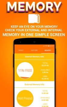 Another important tab in this free phone cleaner app is the memory and storage tab. Here you can control and manage your internal and external memory and storage space. So to make sure no junk and unwanted files are wasting your memory space, we advise you to run the app cache cleaner at least 3 times a day.