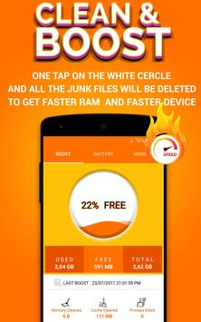With this little free phone cleaner app, you'll be able to optimize and boost your phone like never before thank's to the app cache cleaner feature. Simply land on the BOOST interface and touch the white circle and all your junk files will be removed. this way you'll have a faster RAM and also a faster phone.