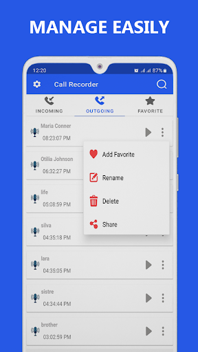 Automatic call recorder allows you to record phone calls while you are on the phone.