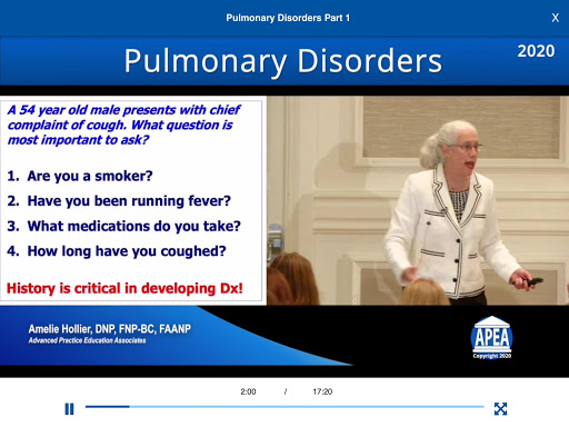 • “The factor that sets APEA leaps and bounds above the other is their delivery. … the speakers are energetic and really drive home the concepts necessary to be successful to pass board exams. I felt the presenters were genuinely vested in my success. I did not feel the same with other review programs that are available for purchase, and that I had purchased. I encourage other students to utilize APEA to prepare for their future as an advanced practice provider.”