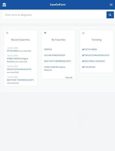 • Access your CareOnPoint subscription wherever you have an internet connection. CareOnPoint is a mobile reference for primary care that provides concise diagnosis and treatment information on more than 370 diagnoses. It features anatomical illustrations, prescribing charts and other images to enhance patient care decisions—all accessible within the app!