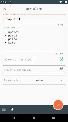 - Possibility to customize the time of receipt and repetition of the note