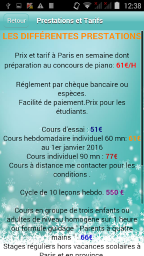 des cours de piano (Tarifs, prestations, avis…) mais aussi de recevoir leurs dernières News ou Flyers sous forme de notifications Push.