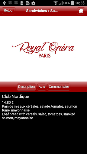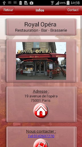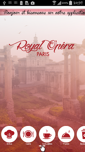 L'application "Royal Opéra" vous offre la possibilité de consulter toutes les infos utiles du café / restaurant (Tarifs, carte, avis…) mais aussi de recevoir leurs dernières News ou Flyers sous forme de notifications Push.