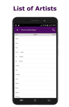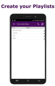 * Music audio player supports all types of mp3 , midi ,wav , flac raw aac files and other audio formats .