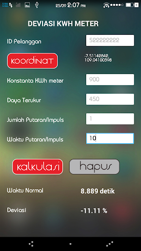 Dengan memasukkan parameter yang ada, anda akan mendapatkan hasil deviasi KWh meter yang telah anda periksa.