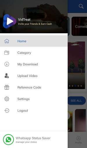 VidTreat Video Status Application show small Video story or Song in full screen on latest video status. so you can easy to view or share in social media.