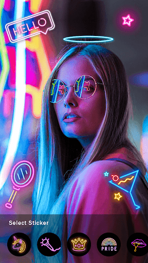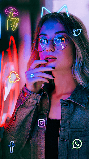 Neon Light Photo Editor - Neon stickers with neon photo editing and sticker photo editor is a sticker photo editor for girls and boys and for all who like face editor apps and cute stickers for photos with neon effects for pictures.