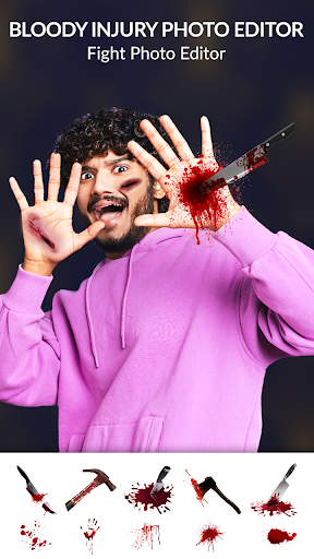 Fight Photo Editor with injury prank stickers to add bloody wounds, bruising, blood sprays and fight blood on photo easy and free with awesome Fight Photo Editor App! This Fight Camera is the best fight Pic Editor or injury photo editor app to create fight face selfies using this cool battle stickers and fight effects!