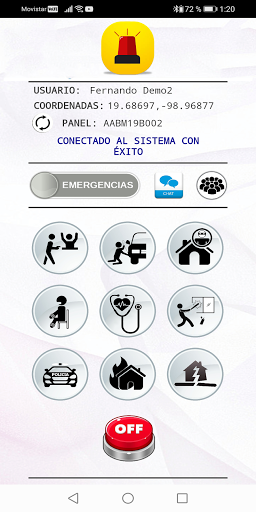 La aplicación móvil cuenta con: historial de quién activo la alarma, ubicación y emergencia,9 tipos de emergencia (detonan la alarma y notifica), 3 botones de pánico (no activa la alarma, manda una notificación), 3 botones en ayuda de la mujer, usuarios ilimitados, administrador de panel, número de emergencia, chat vecinal, junta de vecinos, notificación de activación por control.