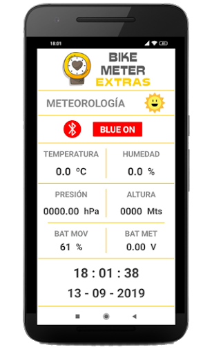 - METEO, si has comprado el Sensor Meteo de Bike Mter vas a poder obtener datos de temperatura, humedad, presión atmosférica y altura. Puedes comprar el Sensor Meteo desde: https://bikemeter.app/es/tienda/b-sensores/b-04-sensor-meteo