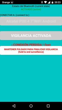 La aplicacion usa el sensor del dispositivo que una vez emparejado con el dispositivo a vigilar, cuando se pierde la señal de bluetooth del dispositivo vigilado, salta una alarma.