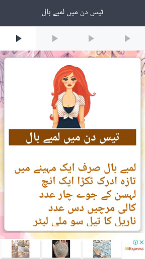 “Top Hair care Tips in Urdu” included a lots of simple and useful tips for hairs care. It include tips how to grow hair naturally, avoid dandruff,stop hair fall and cure graying hairs with home remedies and natural ingredients.This App contains tips for girls as well as women of all ages in Urdu language