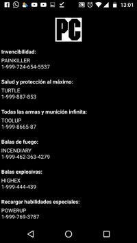 Cuenta con los trucos generales para el personaje como la obtención de armas, vehículos, cambiar el entorno, etc.