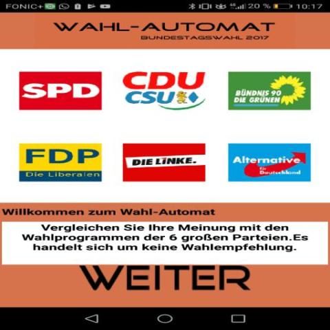 When well-known Wahl-O-Mat the parties be sent theses before the election, which are then answered by the parties. At the end, you get a percentage overview of the results, but it is cumbersome to figure out what exactly matched and what not. With this app, the election machine, the user based on the election programs can directly see what the parties intend.