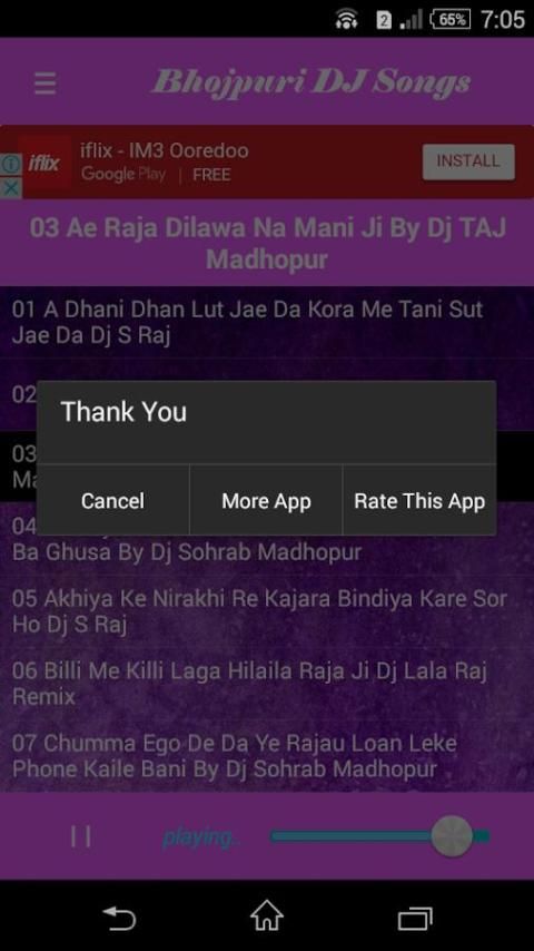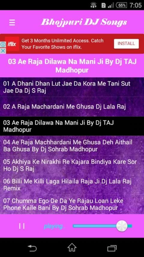 This app is a mp3 streaming of Bhojpuri DJ Songs 2017. Install this app for free and enjoy the music with internet connection (Stable Internet Required).For note, this app doesn't provide download features.