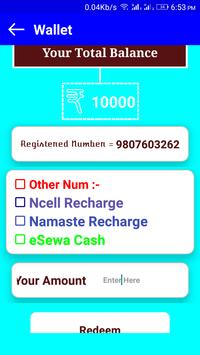 This is the Earning app , by this app you can easily earn Rechage , cash in Ncell, Namaste and eSewa also,