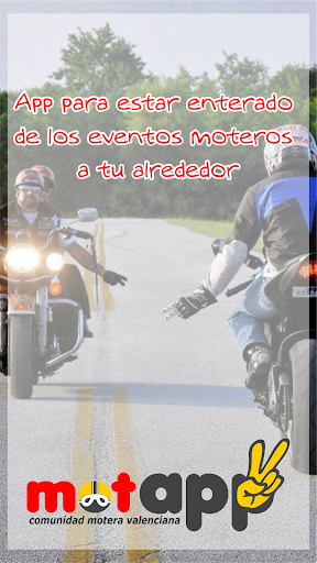Aplicación para la gente de moto donde podrás estar al tanto de todos los eventos y acontecimientos principalmente de la Comunidad Valenciana. Esperamos tu participación y colaboración.