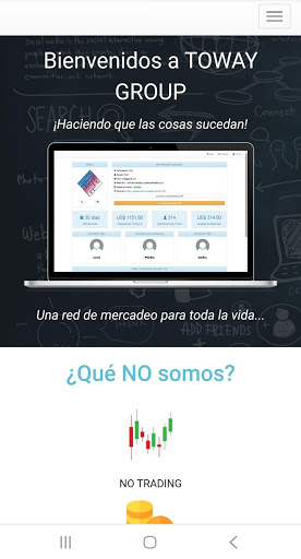 Somos un equipo de personas que se han unido con el propósito de llevarle bienestar financiero, educación y esperanza a varias partes del mundo. Desarrollamos la plataforma con el fin de terminar con las web que estafan a las personas emprendedoras. Nosotros te damos la oportunidad de que tengas un crecimiento en tus ingresos sin la necesidad de que tengas que invertir directamente en algún sitio web. Nuestro propósito es aumentar el precio de la criptodivisa gracias a los envíos de bitcoin entre las billeteras de los diferentes usuarios que integran a TOWAY GROUP y así mismo aumentar el capital de cada uno de las personas de manera automatizada gracias al sistema de desarrollo del sitio. Vale aclarar que no somos una plataforma de inversión ya que TOWAY GROUP les brinda comisión del 100% a sus usuarios, con una transparencia insuperable. Creemos firmemente que la educación, el compromiso y la solidaridad hacia los demás impacta en la situación individual.
