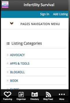 The Infertility Survival Kit has been recognized in Fertility Road Magazine - 5 Innovative Fertility Apps and many articles as a must have app for anyone that is having a difficult time trying to conceive or going through infertility diagnosis & treatment. This app includes the tools and resources you need to help you on your journey including: • A cloud based fertility organizer includes a task list, journal & calendar tat is accessible from any device • A comprehensive directory of resources including clinics, financial resources, apps & tools, books, mind body programs and more • Infertility terms in one convenient place • Quick & easy access to events and the featured infertility professionals •NEW: A blogger feed with many popular infertility blogs The fertility organizer allows you to manage all the day to day information that you receive with a task list, journal and calendar. The calendar helps you manage appointments, medications, lab tests, procedures and natural tracking. The categories are color coded and customizable drop down lists allow you to track the things that are specific to your treatment in your own words. Go beyond other organizers and keep track of your expenses, send text reminders (US ONLY) and log in to your account from any computer with internet access to create your own custom reports that can be used to review with your doctor, nurse, or even to keep surrogates and intended parents informed. We invite professionals and bloggers to join so the infertility community can learn more about how you support the community.