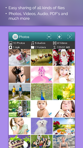 Fast & Easy sharing of files / transferring of all types of files - Photos transfer, Sharing Audio, Video, Sharing Apps (APKs), share files, PDFs and more!