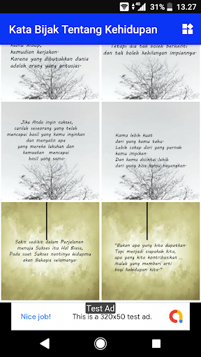 Aplikasi Kata Bijak Tentang Kehidupan terdapat 100 gambar yang berisi kata-kata bijak yang dapat memberikan pencerahan, motivasi dan semangat untuk menjalani hidup yang lebih baik ke depannya.
