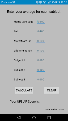 This is a simple application that can help you calculate your AP score for UFS. Other universities may use different calculations.