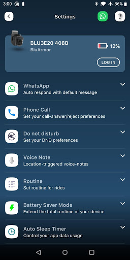 BluArmor is a companion app that enhances your riding experience when paired with a BLU3 E20 from BluArmor. Once BLU3 E20 connects to your Phone, the companion app communicates with your device using a proprietary TWOFLO Tech that offers simultaneous support for Bluetooth Classic and Bluetooth Low Energy links to offer you the right service at the right moment.
